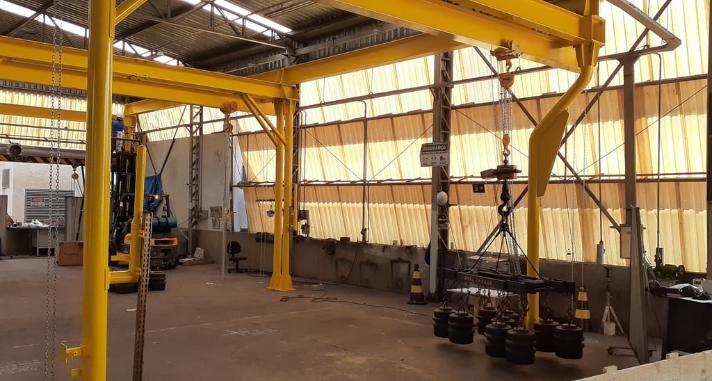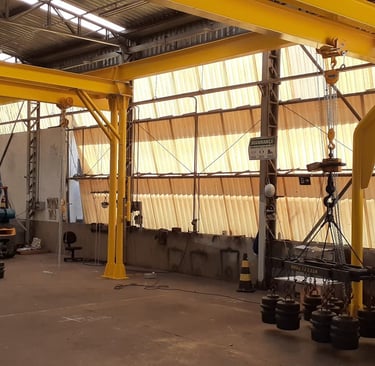 Pontes rolantes, pórticos, olhais, vigas,monovias, plataformas,estruturas de sustentação mecânica,caminhões munck, gaiolas, talhas de corrente manuais, talhas elétricas,entre outros.