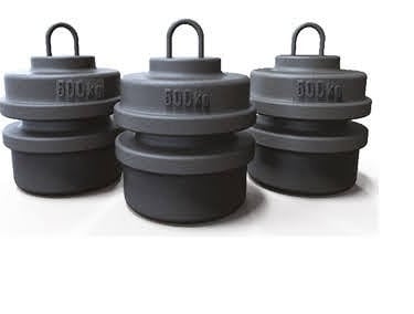 Usamos carga seca(pesos calibrados) para teste de carga em ponte rolante ou equipamentos equivalentes.